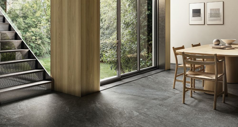 В серии представлено пять цветовых решений: ледяной Ice, нейтральный Mineral, металлический Silver, дымчатый Fog и глубокий Graphite. Эта гамма построена на оттенках, которые встречаются в современных интерьерах чаще всего — от светлых фоновых до акцентных темных. Каждая плитка передает характерную для кварцита слоистость, что создает ощущение объема и движения на поверхности. Покрытие одинаково уместно смотрится в минималистичных пространствах, где важна чистота линий, и в проектах с выраженной материальностью, где фактура становится главным инструментом выразительности.